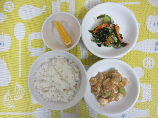 ●ごはん●マーボー豆腐●きゅうりとちくわの酢の物●果物