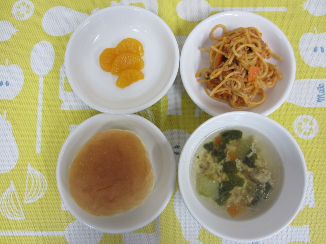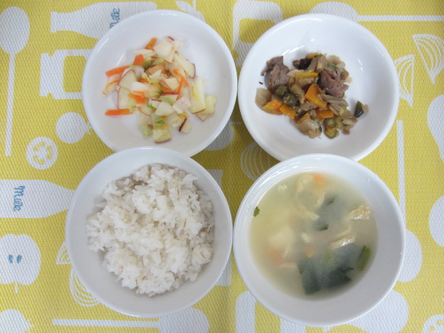 ●ごはん●牛肉とごぼうの炒め煮●白菜とりんごのサラダ●豆腐のみそ汁