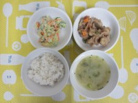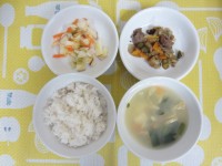 ●ごはん●里芋の煮ころがし●かみかみサラダ●もやしのみそ汁