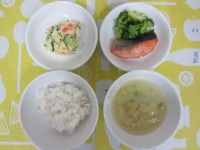 ●ごはん●魚のみそ煮●お花畑サラダ●きのこのすまし汁